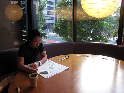 金澤さんは日本経済新聞を読んでいた。お客様との会話が弾むよう、あらゆる方面の知識を取り入れているのだ。