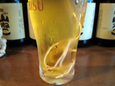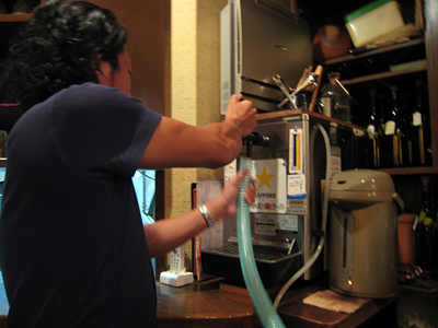 こういう事を頼めるお店は青山の「京菜」しかない。マスターの金澤さんはこういう試みが大好きなのだ。腸から出て来る生ビール。もしかしたら京菜の名物になるかもしれない。