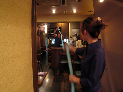 気付くと金沢さんは小腸の端を持ってお店の奥、ビールサーバーのあるカウンターに向かっていた。