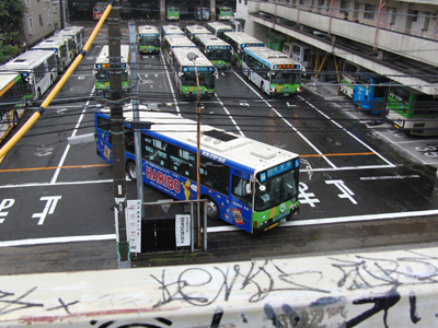全車両が出庫するまで撮影していたのだが、途中1台だけ他のバスを移動させて出発していったのがあった(動画の14秒めあたり)。 法則が崩れた感じがして残念に思ったのだが、逆にいうとそれは、出発しやすい車両を適当に選んで運行しているのではないということの証拠でもある。