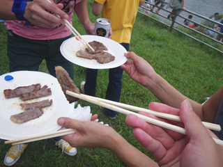 「赤いシールの方がフランベした肉だと思う人ー!」 |