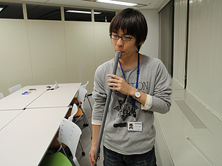 穴のない長い笛で、吹く強さによって、それから笛の先を指で押さえることで、音程が変わります。さっき試作したらすごく手間がかかったので、出品数がたぶん少ないです。ほしい方はお早めに。