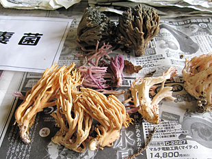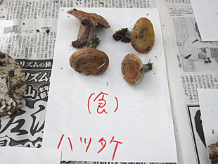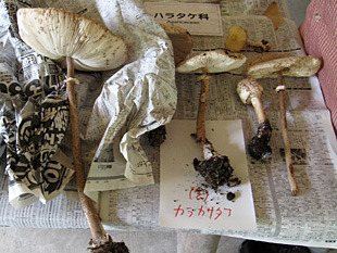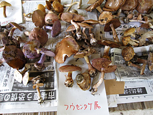 どわーっと広げられたきのこ達は、勉強会のあとで食べられるものは採ってきた人が持ち帰るのだが、食べれば食べられるけれど普通は食べないような、微妙な立場のきのこは残ってしまう。