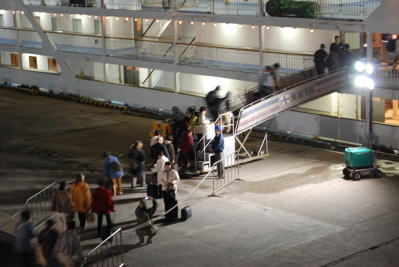 ターミナルは出港を待つグループで賑わっている。釣りやサーフィンの道具を持った人たちは一様にウキウキしているようだ。「興奮しすぎてヤベエ」と言っている女の人もいた。夜の船はそれほど楽しいものだ。