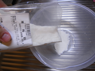 そう、型抜き菓子はいいとして、作り方がまったくわからない。わからないが、既製品の箱書きを見ると「寒梅粉」という見慣れぬ材料がある。調べたところ寒梅粉とは、もち米を餅にした後に焼き上げ、それを砕いて粉にしたもの。落雁などの菓子に使われるようだ。