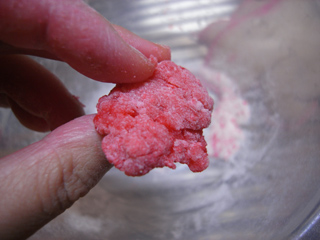 水だとすぐにモチ状になっていた粉が、水あめだとサラサラのまま、まとまる!って何だか整髪料のようだが、とにかく、材料が違うと結果も全然違う、と至極当たり前のことを体で知る。