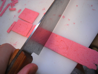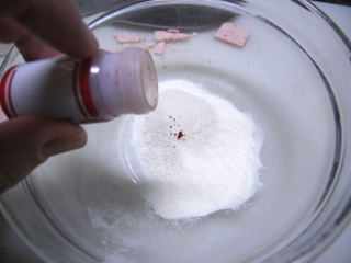 しかし・・・いかんせん落雁はおろか、ふだんめったに菓子など作らないので、なかなかに手間取る。落雁は「粉に、水で湿らせた砂糖を混ぜて」作るようなので、砂糖をケチってじゃあ水だけでもいいや、と混ぜてみたらただのモチになってしまった。試行錯誤の連続で、また6駅越えて粉を買いにいかねばならんのかと焦る。