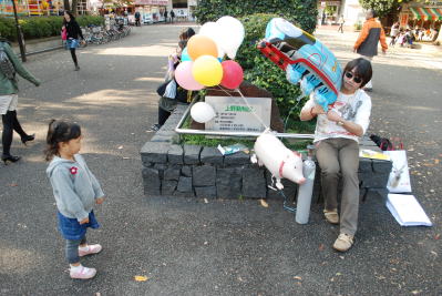 普通なら関わりたくない感じの人だが、なんせこんなにファンシーな風船をタダでくれるとなれば話は別だろう。さあ来い子どもたちよ。