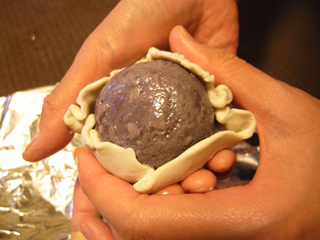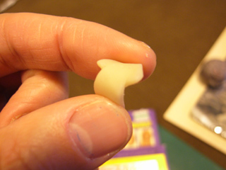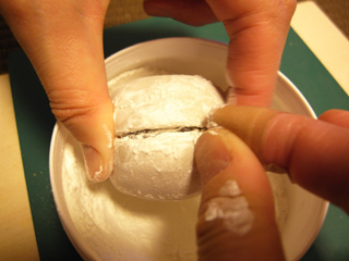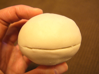 餡を包む薄皮の部分。中の餡が柔らかい素材である以上、少々固めに作りたい。かと言って固すぎてしまってもいけない。柔軟性を出すため、「ラバースカルピー」という樹脂粘土を採用することにした。何だか話が込み入ってきました。パーティーで次々に人を紹介される気分だ。
