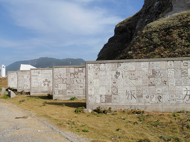 コンクリートの壁が5枚分、その両面に彫刻が施された石がびっしりとはめこまれていた。当時1万枚を目指した勢いがうかがい知れる。