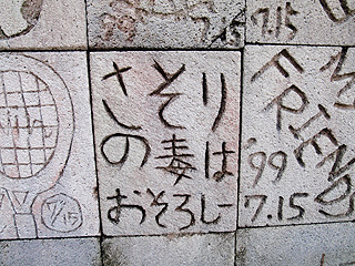 どうだろうか、もしかしたら投稿を頂いた方の彫刻もこの中に貼られているんじゃないか。日付が彫られているものを見ると、頂いた情報どおり約10年くらい前のものが多いことがわかる。