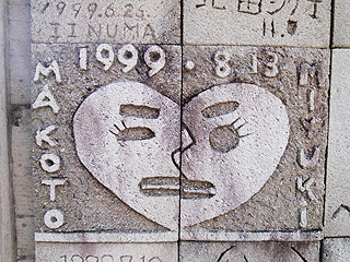 観光協会の方曰く、かつて石版に彫刻をしたものを壁に1万枚張ろう、というプロジェクトがあったのだとか。