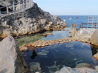 もうひとつの壁を見に行く前にこの公園のすぐ近くにあった温泉を紹介したい。湯の浜露天温泉という石が建っている立派な施設だ。