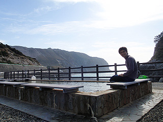 この温泉、海を見渡せる絶景ポイントに建っているのだが、なんと24時間いつでも無料で入ることが出来る(ただし水着着用のこと)。設ける気ゼロだ。
