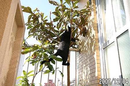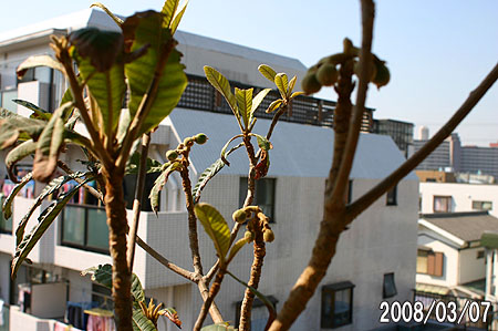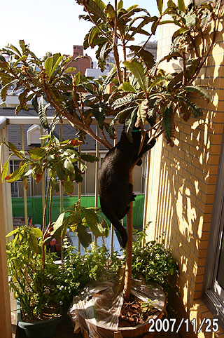 2月、3月と、見るたびに実が大きくなっていった。毎日、鳥に食べられていないか心配になった。猫が見えると警戒するかと思い、ベランダになつめさんを放っておいたりした。飽きたので木には登らず、鳥だけ追い払う仕掛けだ。たまには役に立ってもらわないと。