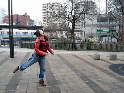 からあげを目の前にした乙幡さんはいきなりのフィーバーである。「うわははは、すごい」といいながら走っている。ここは三鷹、ジブリの森への送迎バスの発着する場所である。ジブリ帰りの人々をまた別の森へいざなうパフォーマンスである。