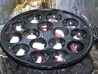 あらかじめタコを焼いてから生地を流し込むという調理法。