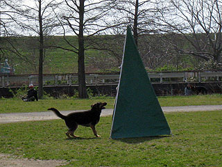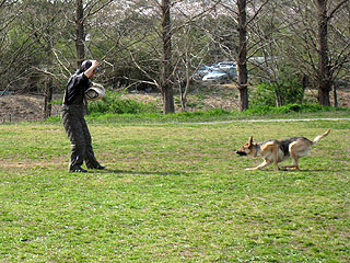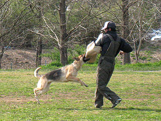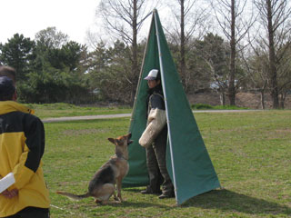 あとから犯人役の人に話を聴いてみたのだが、強い犬に襲われると「体ごと持ってかれる」そうだ。犯人役には慣れてはいるけれども、時々どう見ても気の強そうな犬がいて、そんな犬を相手にするときはやっぱり少し緊張するとか。