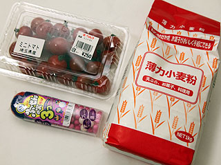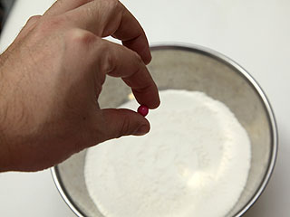室内で安全に、という事で小麦粉とガムを用意した。左の写真にはプチトマトも写っているが、結局使わなかった。小麦粉アースに対して、プチトマトはでか すぎた。隕石が大きすぎるとクレーターどころじゃなくなるからだ。ひぎぃ!アース、壊れちゃう〜!みたいな。