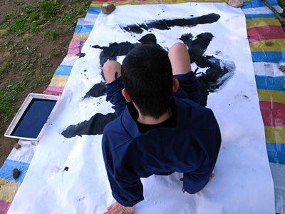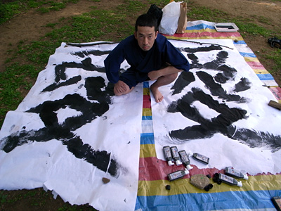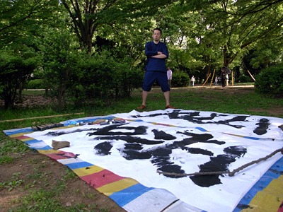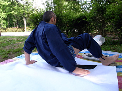 実際にやってみると分かると思うのだが、手と足の置き場が難しい。字が完成していくにつれ、手と足の置き場がなくなっていくのだ。まるでツイスターのようである。更に書いてる所を見ることが出来ない、という難しさもある。勘に頼ってお尻を滑らせるしかない。