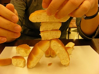 続いて作ってくれたのは「東京タワーぱん」。ここで造形としてのディティールを問うのは野暮というものだろう。パンをできるだけ高く立てるようにすれば、もう心の中に東京タワーは建っているのだ。