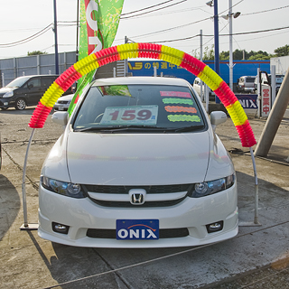 ぼくはクルマのことはさっぱり分からないのだが、この花輪をかけられると、中古車の魅力はUPするものなのだろうか。購買意欲が増すのだろうか。謎だ。