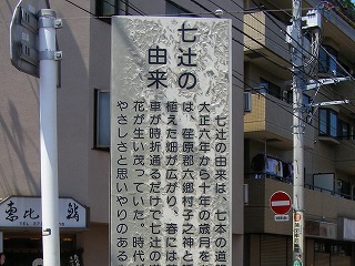 七本の道路が交差する場所。こうした地点はかなり珍しいらしく、「七辻」と呼ばれているようで、その由来を説明する碑も建てられていた。