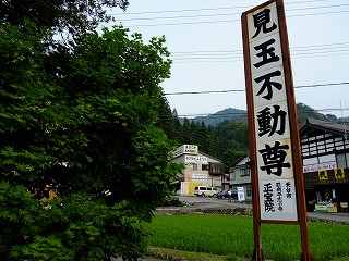 情報が20年以上前というのが少し気になりつつも、やってきたのは見玉不動尊。静かな山あいにある、歴史のありそうなお不動様だ。鳥居をくぐると、ひんやりとした空気に変わったのがわかった。