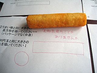 ・半分に折ったティッシュを描いてください ・うまい棒を描いてください ・500円玉を描いてください