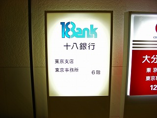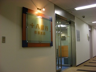 十六からひとつ飛んで、続いては「十八銀行」。長崎を基盤とするこの銀行の東京支店は、ビルの6階にある。そのため、銀行というよりはオフィスのような雰囲気が漂っていた。