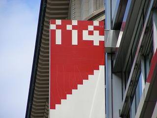 行章は赤い四角形が4つ組み合わさったもの。ひとつだけ角度が違う。シンプルでかっこいいが、じっと見てみてもどういう意味があるのかわからない。