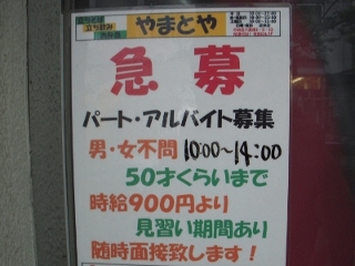 募集が終了していたらやる気のない人が店にいるはずだ。働く気がないのに店にいる店員にあってみたい。まだ募集しているのならばその経緯が聞きたい。外れなしのこの見てきて。早速向かいますぞ。