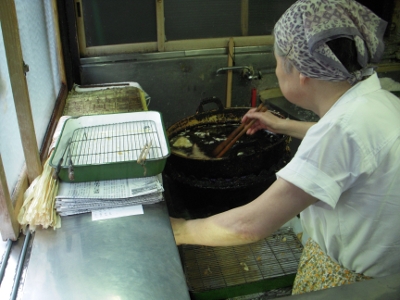 僕「このお店って店内で食べることはできないんですか?」 おばあちゃん「今は保健所が厳しくなって食べていってもらうことは出来ないんですよ。」 僕「そうなんですか。昔は二階とかで食べれたりしたんですか?」 おばあちゃん「いえ、ここですよ(入口のイスを指さす)」