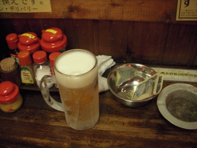 初めての立ち飲みだがこの店は即金で、御代を小さなボールに入れておくのが普通のようだ。周りにならってお金を入れる。 それだけで場に馴染めた感じがする。