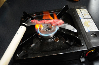 コンパクトさの代償として、肉一枚くらいしか乗せられないんですが、その代わり火に近づけるも遠ざけるも思いのまま! ものすごく扱い安いです。