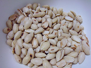 アーモンドは生の皮むきの物を購入してきたので一度煎ってから使用しました。