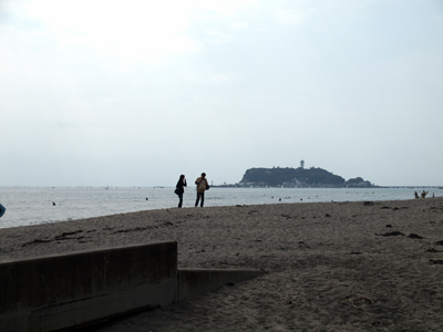砂浜からは江ノ島も見える。 お彼岸を迎えたというのにこの日は暑く、腰まで水に浸かって子供たちが遊んでいる。 きっとここでWindows7ボートを浮かべたら、子供たちの羨望の的になるに違いない。