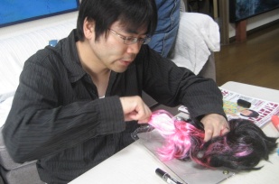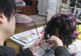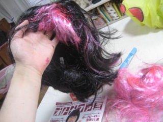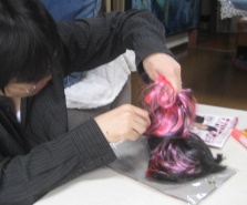 マッシュルームカツラ黒髪化作業