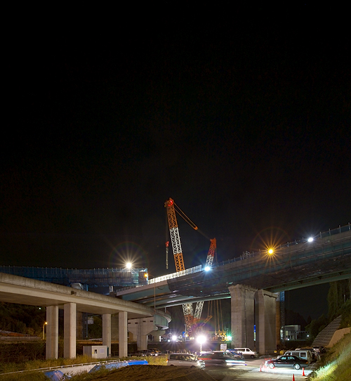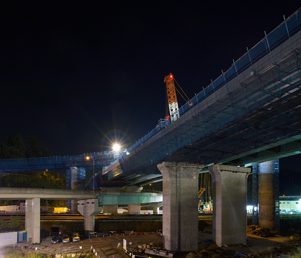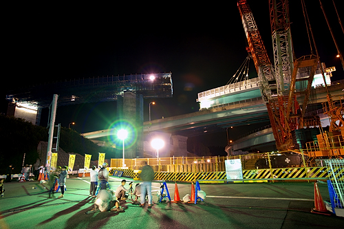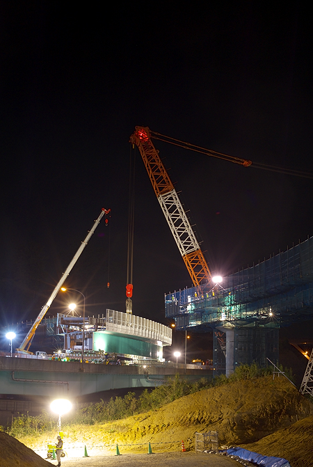 ジャンクションといえば魅惑の立体交差。そんなわけで、その橋の一部が国道126号をまたぐことになり、今回こうやって通行止めをして、よっこいしょと橋を架けることに相成ったというわけです。