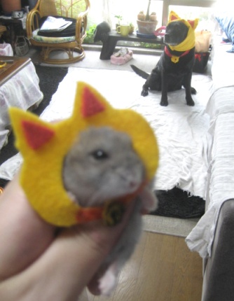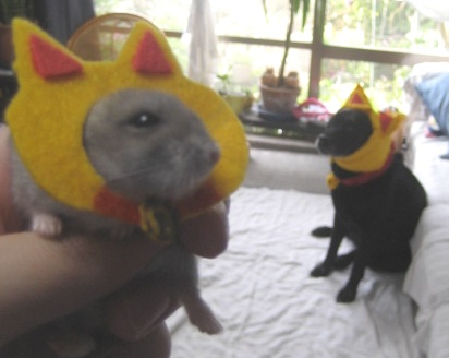 イヌとハムスターの まねきねこダックコンビが ここに誕生したのでした!!!