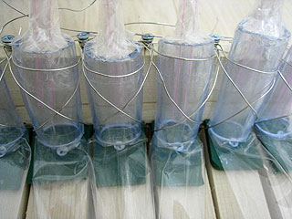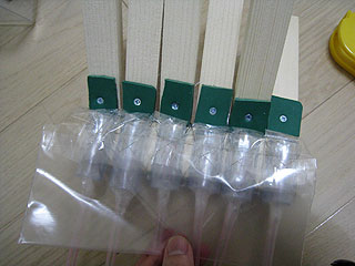 ポンプから送り出した空気は全部のストローに送らなければいけないので、空気はいったん空気袋に集めることにした。そこから各ストローに分岐する。