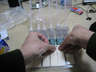 ひとつできてしまえば、後は同じことの繰り返しだから楽だ。あとは同じ仕組みで鍵盤をたくさん作って、空気袋につなげばいい。