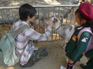 いままでは檻越しで見たり見られたりしていた関係だったが、 動物と直接ふれあえる場所なら檻越しとはまったく違う成果が現れるかもしれない。 一縷の望を胸にヤギや羊と直接触れ合えるこども動物園に向かった。