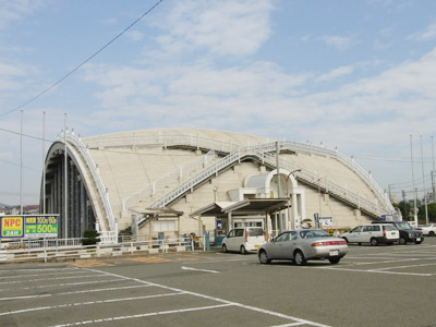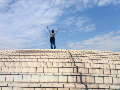 この施設は半球の形をしていて屋根を歩くことができる。そろそろ帰りの新幹線の時間が迫っていたので、児島に来た最後の思い出にこの施設の屋根にのぼった。