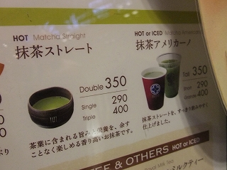 緑茶のお店ということで、メニューには抹茶もある。濃さによってストレートとアメリカーノとがあるのがおもしろい。そういう表現と抹茶が組み合わさったのは初めて聞いた気がする。