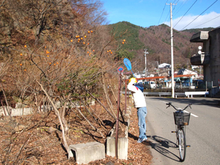 「勝手に柿とっちゃダメですよ!」ぼくは思わず声をかけてしまった。