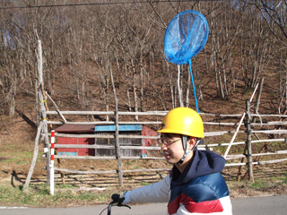 網で何かをつかまえるなら、もう少し暖かい季節が良かったようだ。それは準備段階でなんとなくわかっていたことで、ホームセンターで「虫取り網ありませんか」と訊ねたところ、「これ一本だけ残ってました」と持ってきてくれたのが、この魚釣り用の網である。 そういえば幼い頃、母が内職でつくっていたホタテ養殖用の網カゴの色もまた青であった。