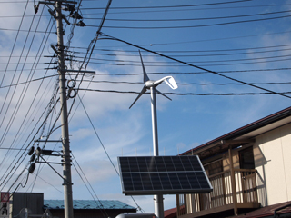 「あそこにソーラーパネルがあるでしょう」 「ありますね」 「その上に風ぐるまがついてます」