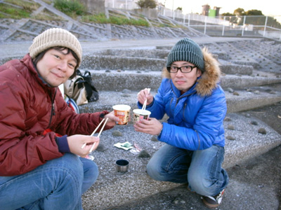 だから我々もみそ汁を用意した(こういう点はぬかりない)。海辺でみそ汁を飲んだら寒中水泳した気分になるんじゃないかと思ったのだが、まったくそういうことはなかった。