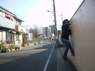 落とすのは無理だしケガをしそうなので、壁にぶつかってみた。